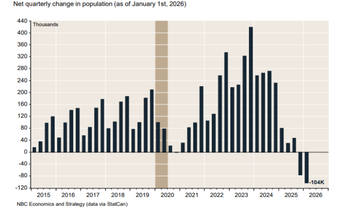 Canada just had its first two consecutive quarterly population declines. In Q4, 2025, the population decreased by 103,504 people. The main reason for this decline is the decrease in temporary residents after years of uncontrolled mass immigration.